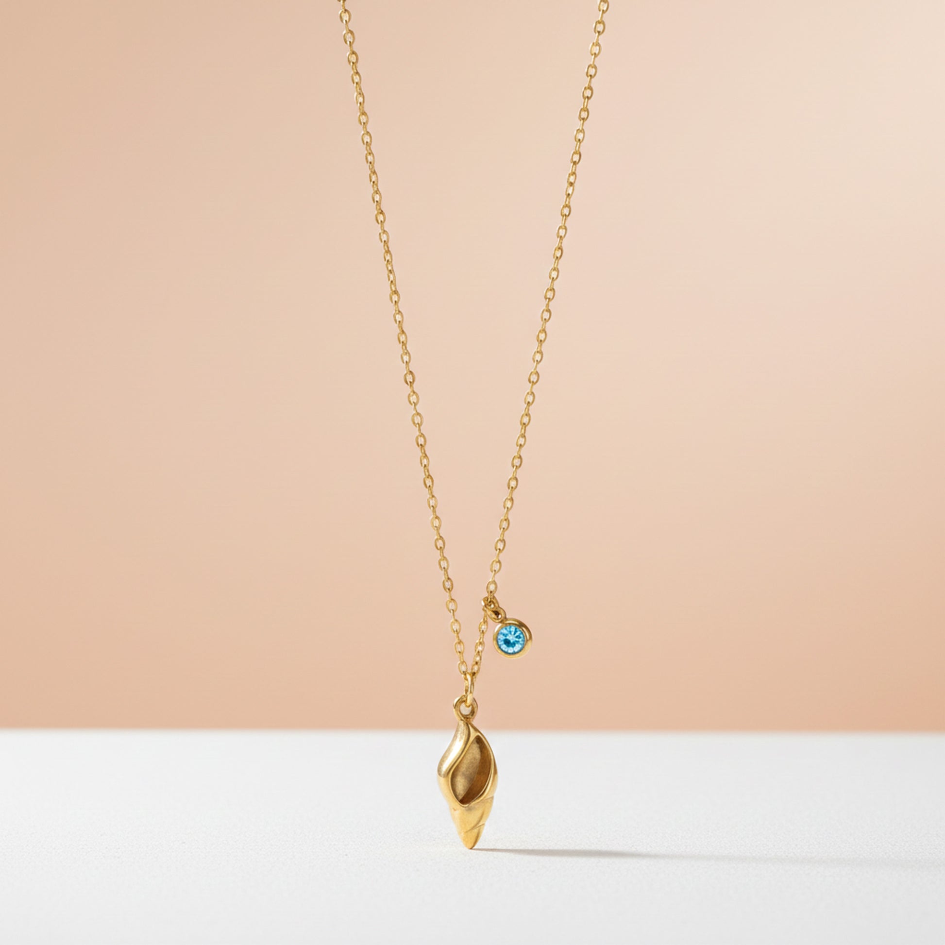 Discover the Florida Necklace from BAYANA Jewellery — a delicate gold shell necklace designed to capture the glow of coastal summers. Featuring a sculpted 18k gold shell charm paired with a light-catching zircon stone, this piece embodies effortless seaside elegance. Perfect for layering or wearing solo, it’s crafted with premium waterproof gold jewellery quality for long-lasting shine.