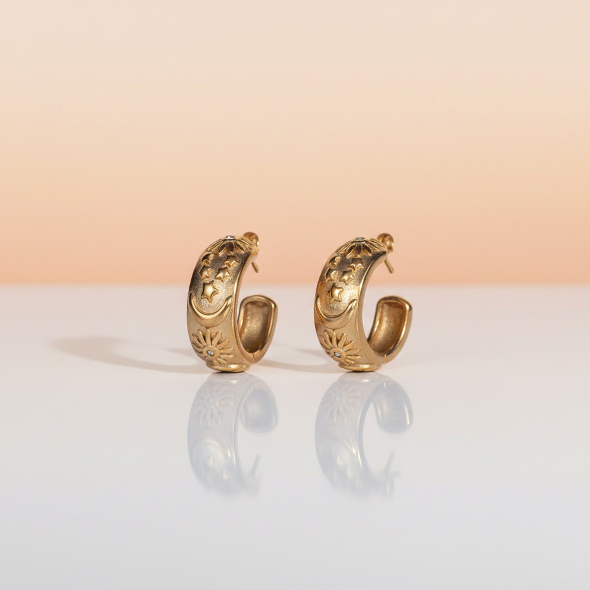 The Lunasol Hoops embody BAYANA’s signature coastal radiance — timeless, luminous, and designed to elevate every look with subtle sophistication.