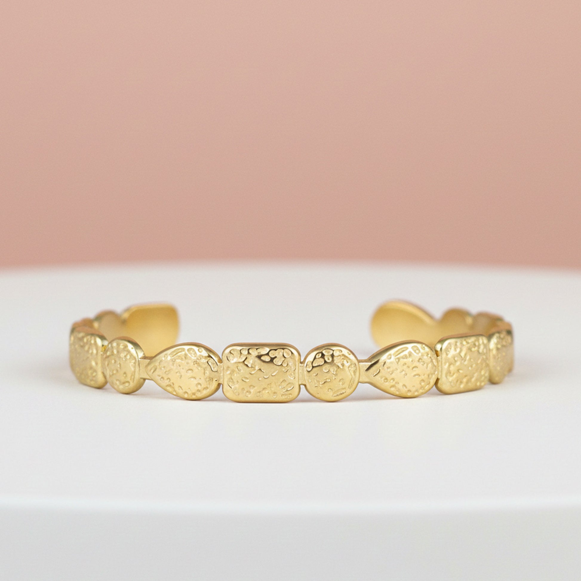 The Manly Bracelet is a modern coastal statement inspired by textured shorelines and sunlit ocean reflections. Featuring a series of sculptural gold-toned elements, this bracelet adds depth and character while remaining effortlessly wearable.