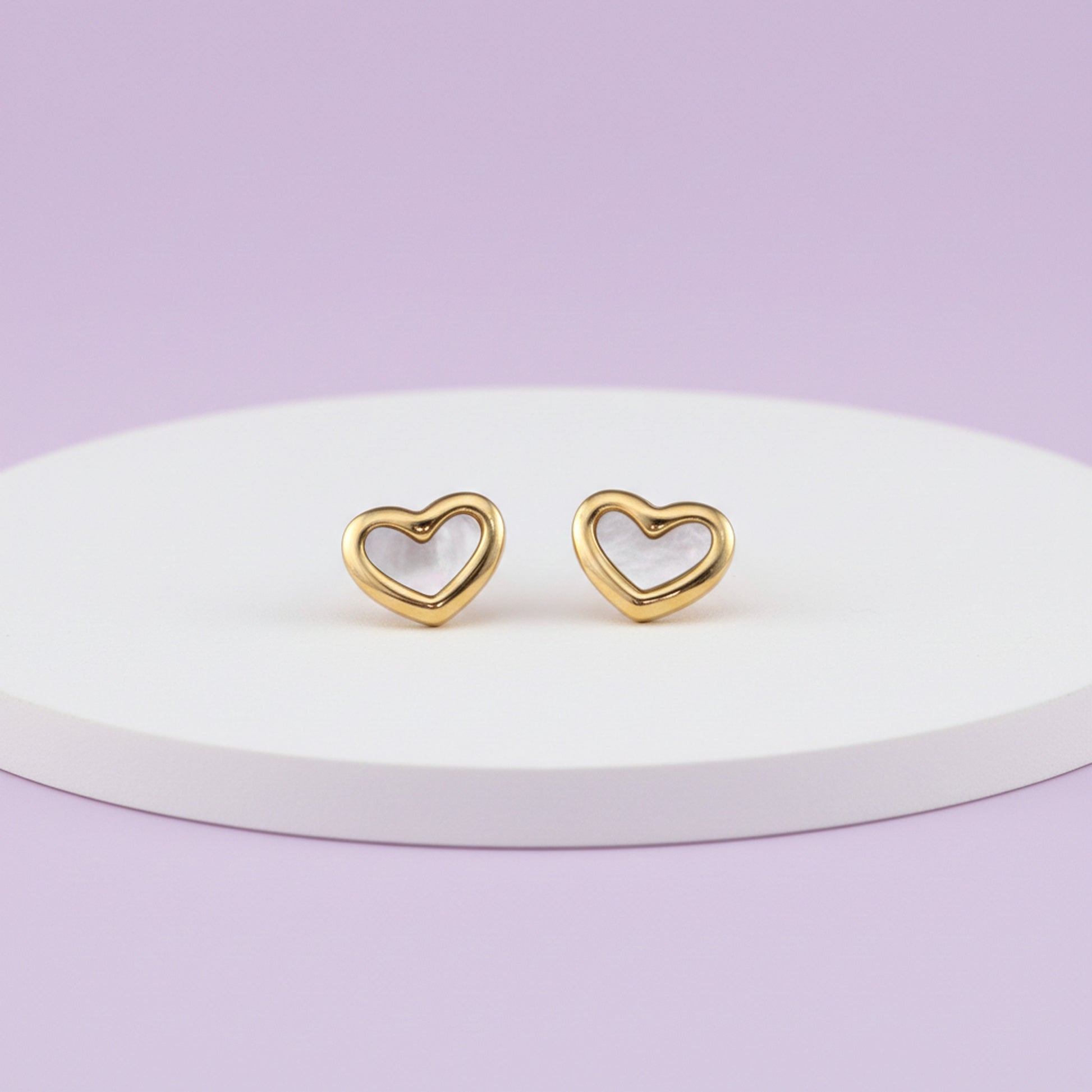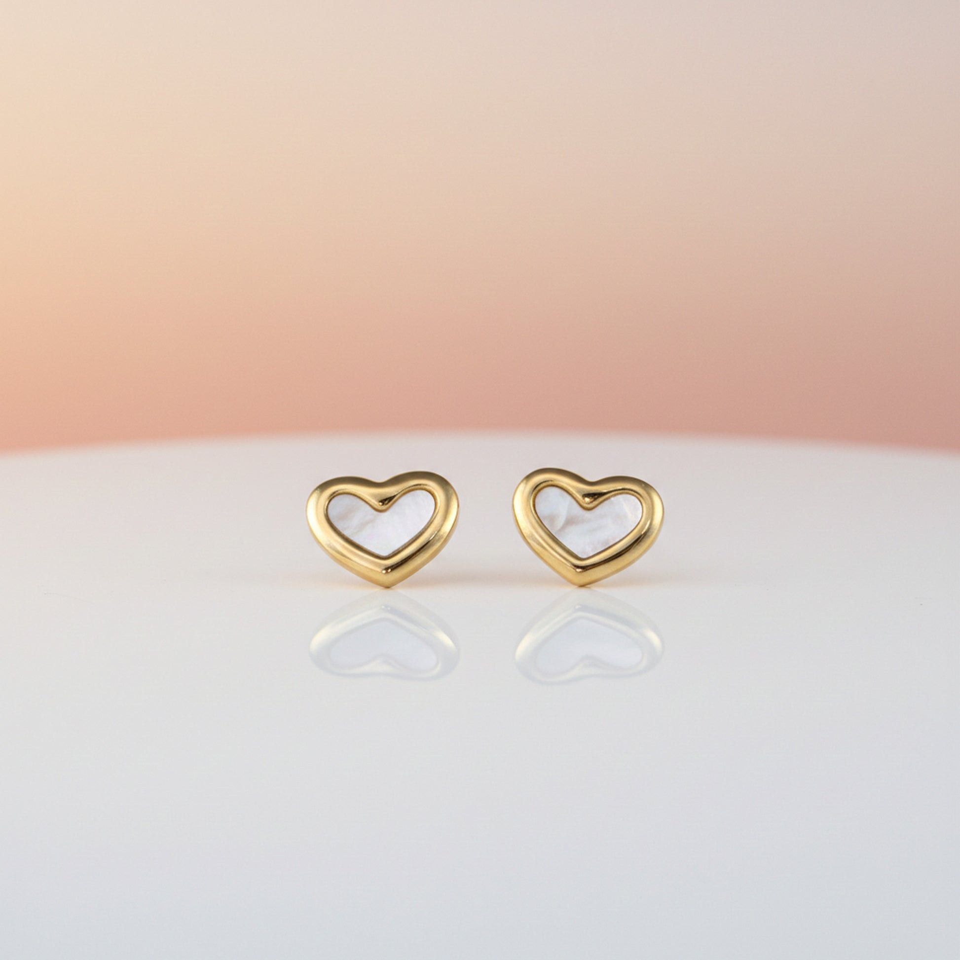 The Ocean Heart Earrings are a delicate expression of ocean-inspired beauty. Featuring a soft heart-shaped silhouette with a natural shell centre, these stud earrings bring a subtle glow and effortless elegance to everyday wear.
