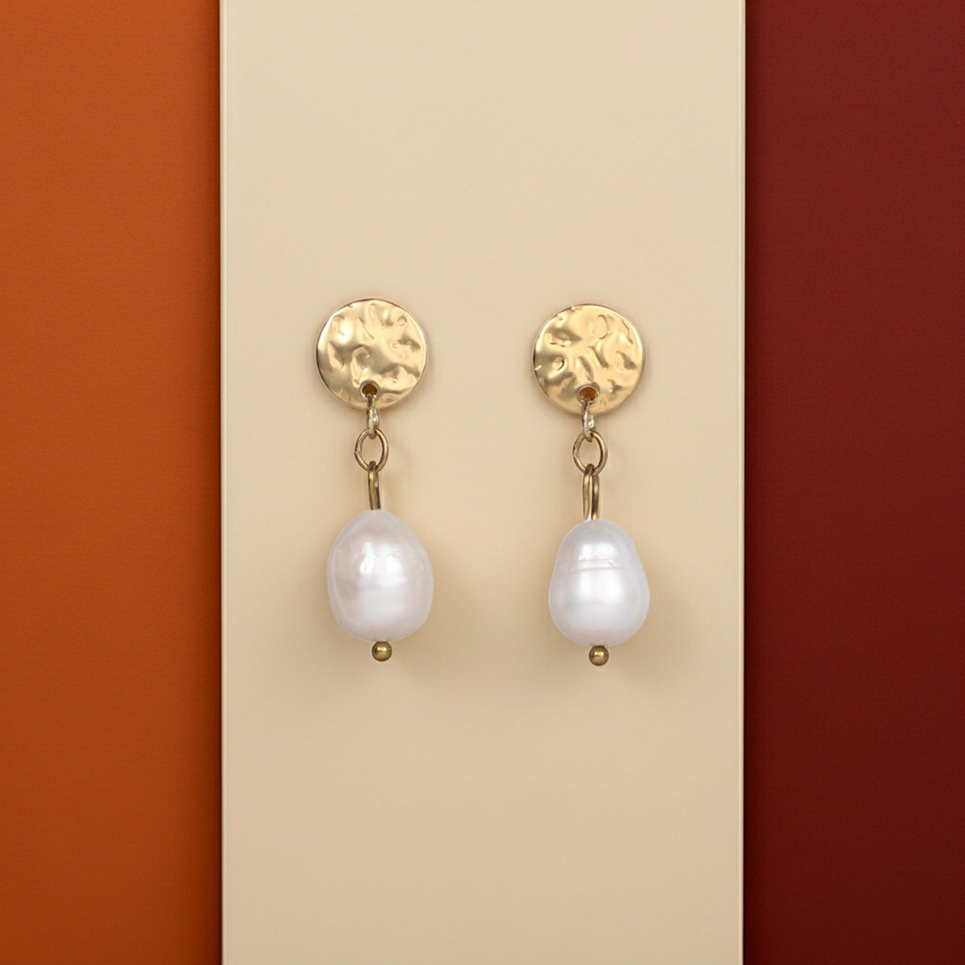 Introducing the Anita Earrings from BAYANA Jewellery — elegant gold pearl drop earrings inspired by the glow of coastal sunsets. Each earring features a textured 18k gold stainless steel base paired with a lustrous pearl, creating a timeless balance of modern minimalism and ocean-inspired charm. Lightweight and versatile, they’re perfect for both everyday wear and special occasions.