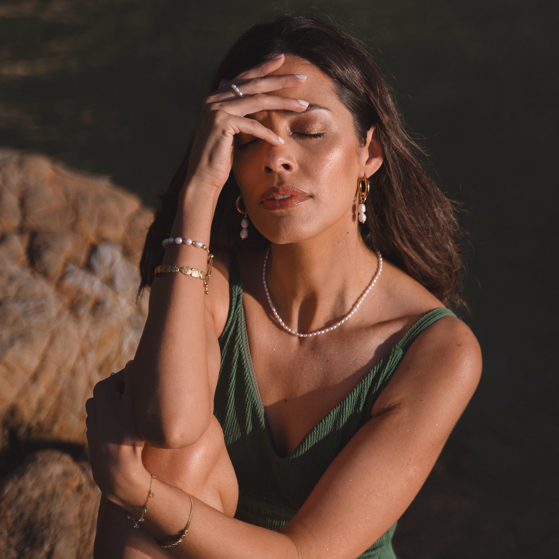 Crafted from high-quality 18K PVD gold-plated stainless steel, the Ocean Pearl Necklace is designed for durability and comfort. Lightweight and refined, it sits beautifully along the neckline and layers seamlessly with other pieces.