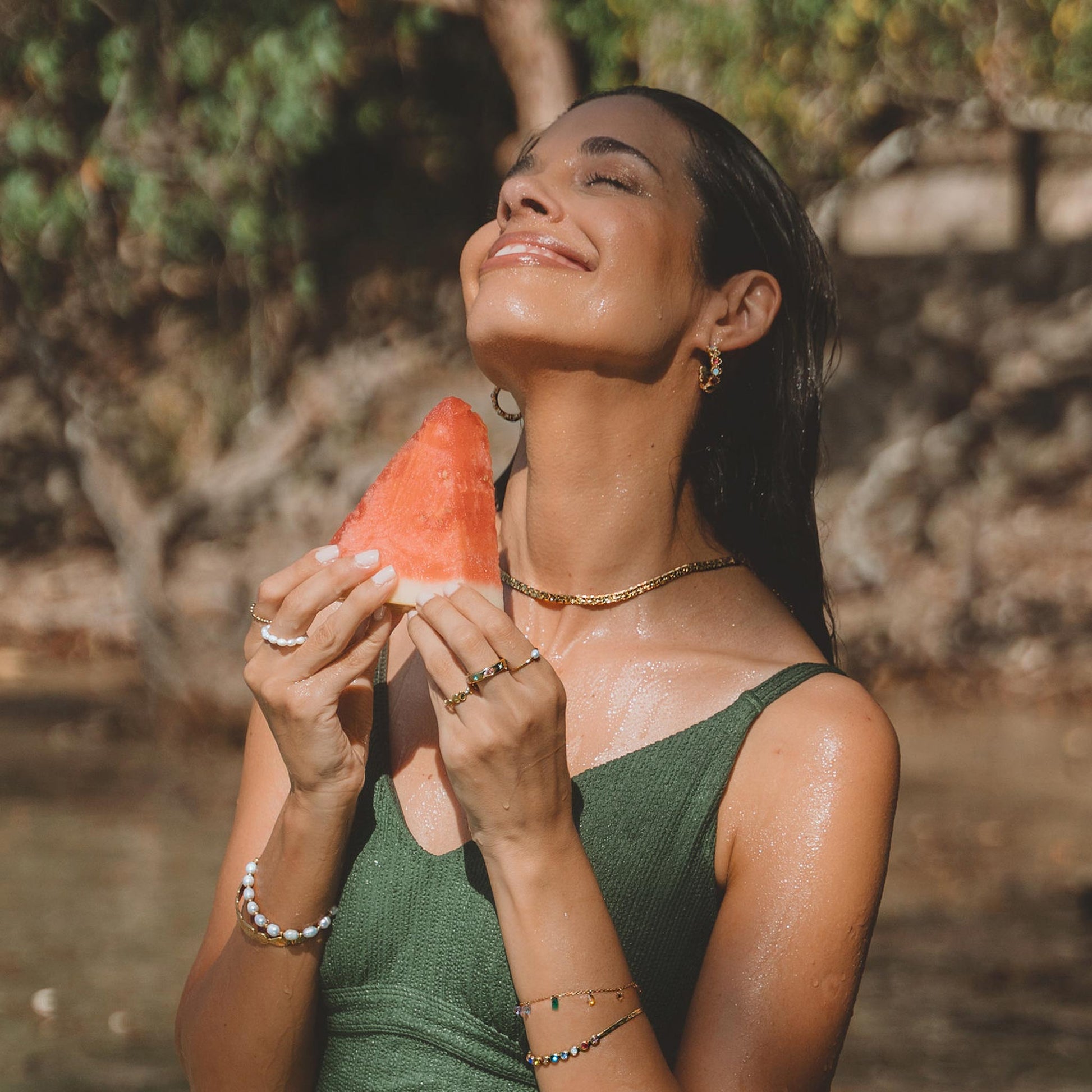 - While our pieces are waterproof, we recommend avoiding chlorine or other chemicals in high concentrations.